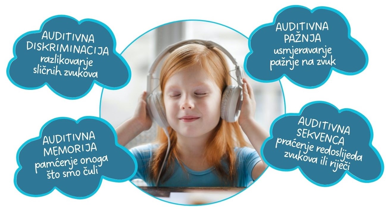 U složenom procesu slušne percepcije sluh i mozak surađuju u prepoznavanju i tumačenju zvukova kroz nekoliko ključnih sastavnica koje čine temelj za razumijevanje govora te kasnije uspješno učenje čitanja i pisanja: